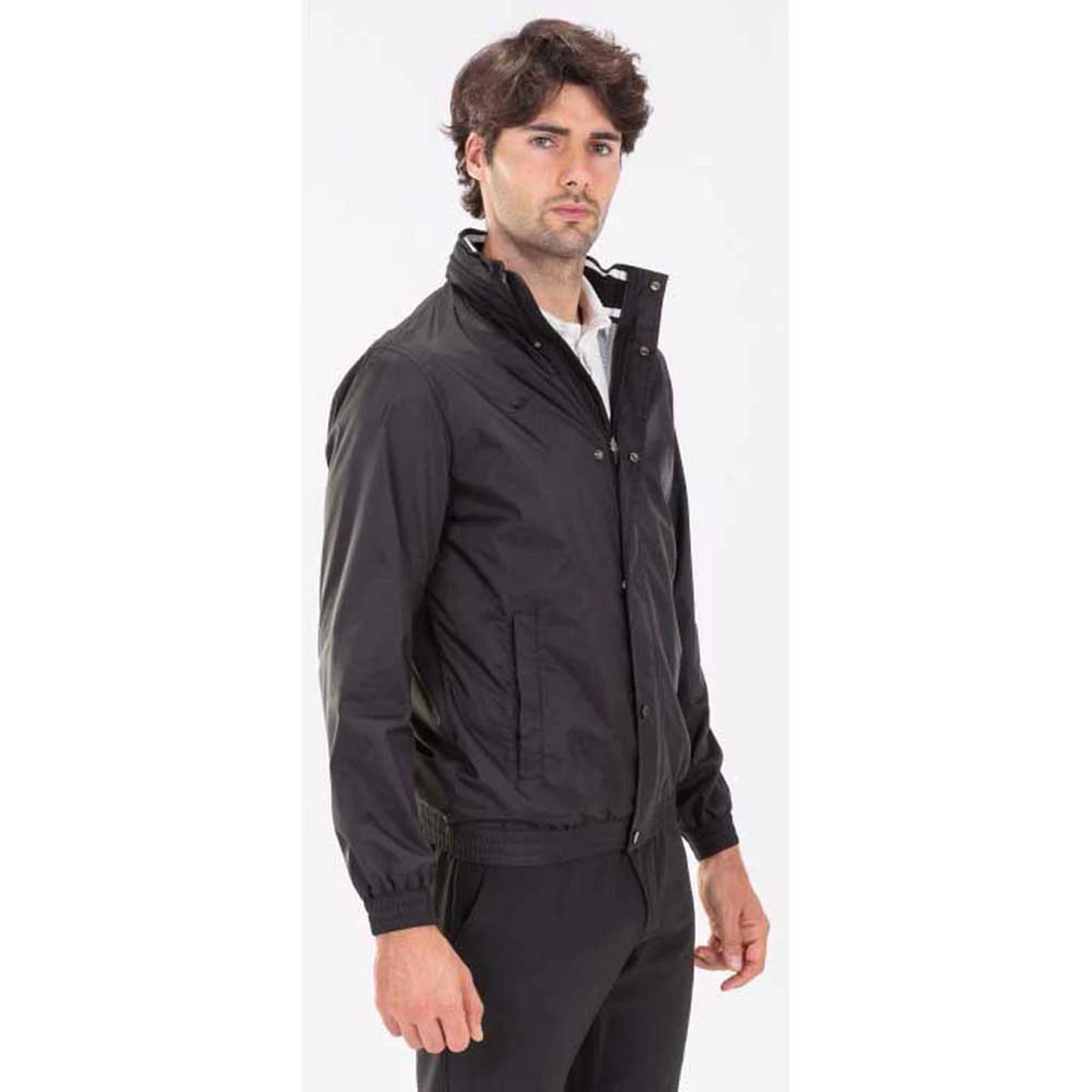 Veste imperméable à fermeture éclair sur le devant et patte de boutonnage à boutons-pression. Capuche intégrée à l’intérieur du col. Logo « J » brodé de couleur assortie.